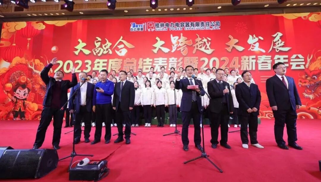 2024年1月12日,以“大融合·大跨越·大发展” 为主题的桂林电力电容器有限责任公司(以下简称“桂容公司”)2023年度总结表彰暨2024新春年会在桂林香格里拉大酒店隆重举行,公司领导、干部、员工以及外邀嘉宾等800多人齐聚一堂,共襄年会盛典。